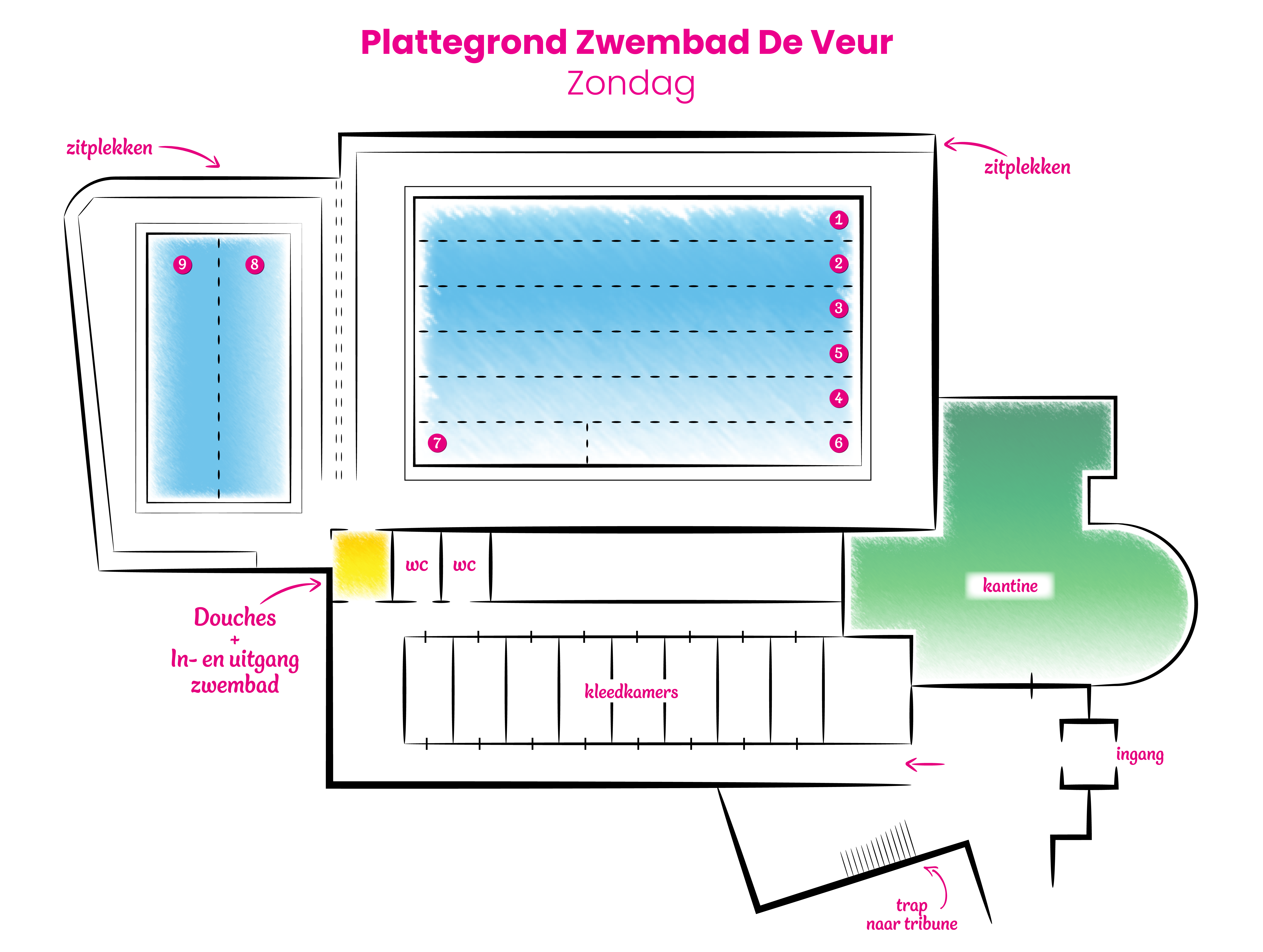 Hier vind je alle praktische informatie met betrekking tot Zwembad De Veur. Van lesdagen en tijden tot de huisregels en bereikbaarheid, wel zo handig!